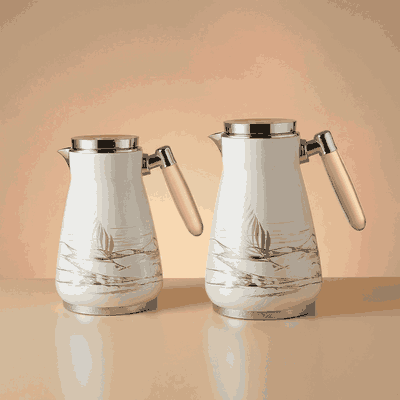 طقم ترامس سكون السيف غاليري، 0.75 / 1 لتر، قطعتين، حافظة داخلية زجاج، غطاء ضغاط، يد فضي - أبيض لؤلؤي فضي
