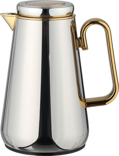 ترمس خزام ستانلس استيل السيف غاليري، 0.7 لتر، خامة داخلية زجاج حراري، ضغاط، خدمة ذاتية - فضي ذهبي